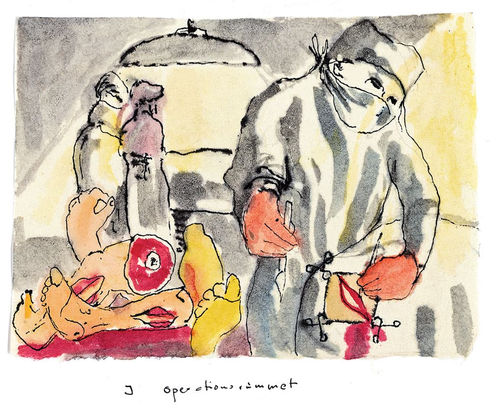 Der mødte ham lidelser, som trodser enhver beskrivelse. Året var 1945, og alt var i opløsning for tyskerne, hvis hære på det tidspunkt mistede 350.000 mand – om måneden! Der var døde og sårede overalt. Lazaretterne var overfyldte i grotesk grad, og soldaterne døde som fluer. Tyskerne havde ikke – i modsætning til de allierede – penicillin. Ja, de manglede efterhånden selv de mest basale medikamenter og fornødenheder. I mange lazaretter havde man hverken gazebind eller servietter. Enhver operation blev derfor et frygteligt svineri.