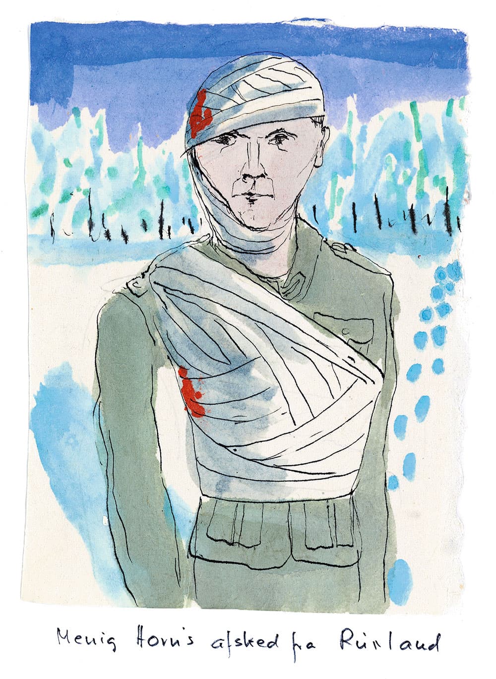 »Det ensomme hjerte: Fortællingen om en musikalsk soldats utrolige odysse igennem 2. verdenskrig og hans drøm om at blive dansker« er udkommet på Politikens Forlag. Akvarellerne er alle fra bogen og forsynet med Hans Horns påskrift. Fotografiet er fra krigens tid, men fotografen er ukendt. Illustrationerne er venligt stillet til rådighed af forfatter og forlag.