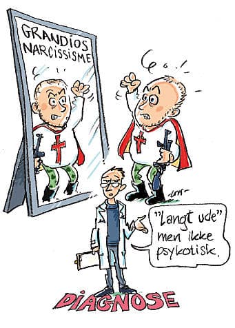 Jeg har ikke været tæt på ham eller læst psykiaterrapporterne. Imidlertid kan jeg slet ikke se, at han indeholder noget psykotisk, men derimod besidder en svær personlighedsforstyrrelse. Der har gennem årene været adskillige personlighedsforstyrrede patienter gennem klinikken her. Randers er jo et område, der kan ligne Nørrebro i København. Nogle af disse patienter har haft en personlighedsforstyrrelse uden noget egentligt psykotisk, men de har været fanatisk, overflødigt og urealistisk optaget af ideer inden for politisk eller religiøs ideologi. Handlingsmæssigt med en bremse tidligere end Breiviks, og dermed mindre skadende ondskab.