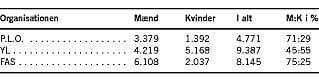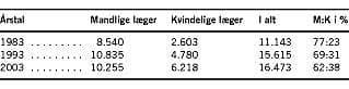 Pr. 8.2.2005 var kønsfordelingen blandt medlemmerne af Lægeforeningen: Se Tabel 1 .