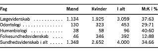 Dette forhold smitter naturligvis af på universiteternes studenterbestand. Eksempelvis på Københavns Universitet pr. 1.10.2004: Se Tabel 3 .