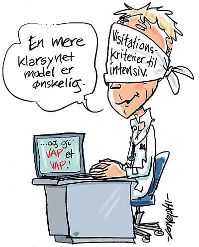 Det er værre med visitationskriterierne til intensivafdeling, da disse potentielt kan skade patienterne. Der eksisterer nemlig ingen validerede modeller for dette, så hvis DDKM eller hver region opfinder deres egne kliniske visitationskriterier og applicerer dem på noget så komplekst som det at vurdere, om en kritisk syg patient skal på intensivafdeling eller ej, så har dette potentialet til at gøre mere skade end gavn. Vi har på Rigshospitalet diskuteret dette meget, da Joint Commission år efter år har ønsket kliniske kriterier for visitation. I diskussionen har vi inddraget dygtige kollegaer fra Kaiser Permanente i USA, som arbejder videnskabeligt med dette. Heller ikke Kaiser Permanente »tør« implementere kliniske kriterier for visitation til intensivafdeling, da de ikke er gode nok.