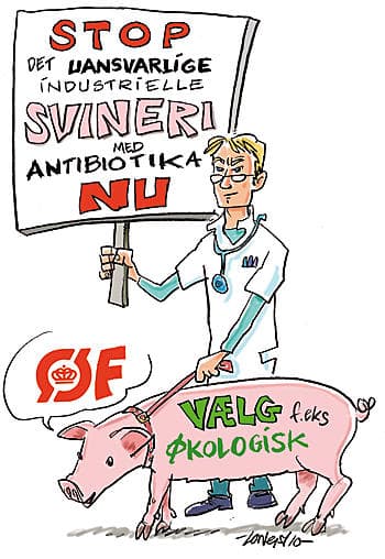 Dansk svineproduktion har ekspanderet voldsomt i de senere år. Der er tjent mange penge, mens det gik godt, men ekspansionen har trukket et spor af miljø- og sundhedsproblemer efter sig. Et af de mest markante problemer er et voldsomt stigende antibiotikaforbrug, som har skabt en syndflod af resistente bakterier. Disse bakterier spredes nu fra svinestaldene og giver anledning til alvorlige infektioner hos mennesker. Eksempler på sådanne bakterier er meticillin-resistente stafylokokker (MRSA) og colibakterier med extended spektrum beta-laktamase-resistens. Svineproducenternes antibiotikaforbrug er dermed ikke længere et internt driftsøkonomisk anliggende, men et sundhedsproblem, som berører hele samfundet.