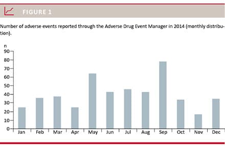 In 2014, a total of 484 ADRs were reported through the ADEM. The median number of reports handled by the ADEM was 37 per month (range: 17-78) (Figure 1).