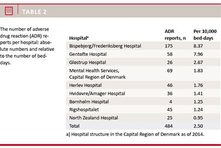 The ADEM received reports from all hospitals in the Capital Region of Denmark. Table 2 shows the number of reports per hospital, absolute and relative to the number of bed-days (as an indication of hospital activity).