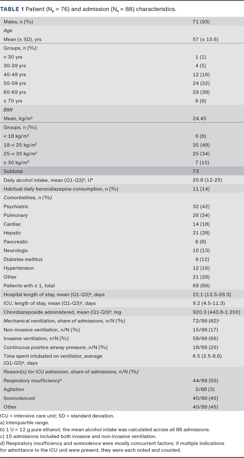 Baseline information on alcohol consumption, benzodiazepine use, comorbidities, mechanical ventilation, length of stay and antibiotics used was extracted from the patients’ EHR by a designated department physician.