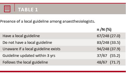 The availability of local guidelines among anaesthesiologists providing anaesthesia for hip relocation is summarised in Table 1