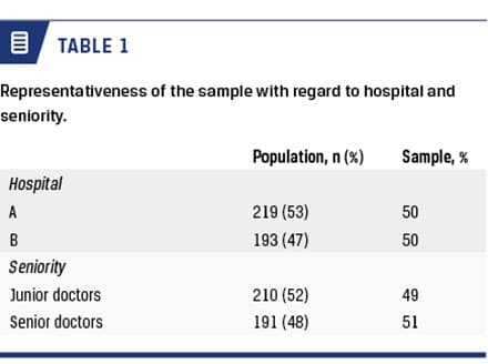 analysed for representativeness with regard to hospital, hospital unit and seniority.