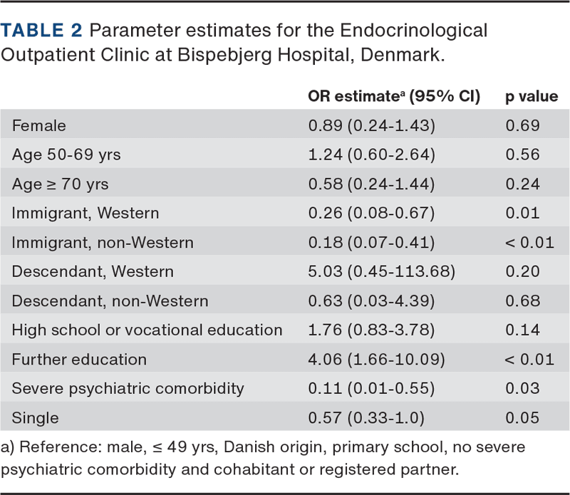 The Centre for Diabetes and Heart Diseases in the Municipality of Copenhagen (CfDH) and the Endocrinological Outpatient Clinic at Bispebjerg Hospital in Copenhagen (ICamb) participated in a national multi-centre pilot test of the PRO diabetes questionnaire. It is essential to examine whether the PRO diabetes questionnaire benefits all PWD regardless of their SES. This register study investigated the relationship between participation in the PRO diabetes questionnaire and factors related to SES, including severe psychiatric comorbidity.