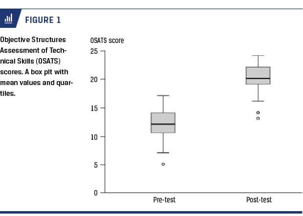 RESULTS: We found that the course participants matched the target group. The participants’ OSATS score increased from 12.1 in the pre-test to 19.9 points (p < 0.0001) in the post-test. The completion rate was 99% and the failure rate was 11%. The course met 13 out of 14 requirements for a simulation-based course.