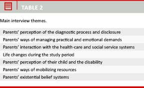 4. Graungaard AH, Skov L. Why do we need a diagnosis? A qualitative study of parents’ experiences, coping and needs, when the newborn child is severely disabled. Child Care Health Dev 2007;33:296-307.