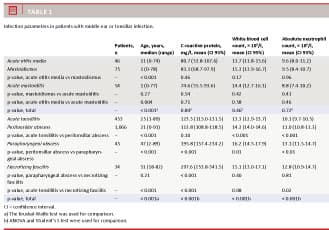 The mean values of the infection parameters in relation to middle ear and tonsillar infections are summarized in Table 1.