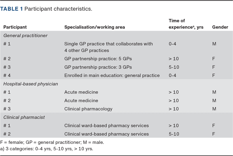 METHODS. In April 2024, a focus group interview was conducted with four hospital-based physicians (HBPs), three general practitioners (GPs) and two clinical pharmacists at the University Hospital of Southern Denmark in Aabenraa, Denmark.