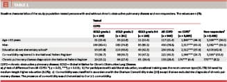 Table 1 shows the baseline characteristics for participants with and without COPD as well as for the non-responders. In comparison with participants without COPD (n = 3,995), significantly more participants with COPD (n = 546) were more than 65 years of age, were male, had a lower level of education (i.e. only elementary school), had co-morbidity and had a diagnosis of chronic pulmonary disease recorded in the National Patient Register.