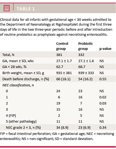 Necrotising enterocolitis (NEC) is a serious complication in neonatology, affecting mainly preterm infants [1]. The clinical presentation of NEC varies from feeding intolerance and mild-moderate abdominal symptoms to severe illness with necrosis of large parts of the intestine associated with a high mortality despite intensive care and surgery. There is good evidence from meta-analyses that probiotics reduce the risk of necrotising enterocolitis in preterm infants [2-4]. Despite the evidence, there has been a reluctance to generalise positive results and recommend routine prophylaxis – especially in high-risk infants [5, 6]. Limited internal validity (bias) or limited external validity of randomised trials, particularly for the most preterm infants with the highest risk for NEC, have occasionally been cited as reasons that may explain a lack of similar beneficial effects in daily clinical settings [7].
