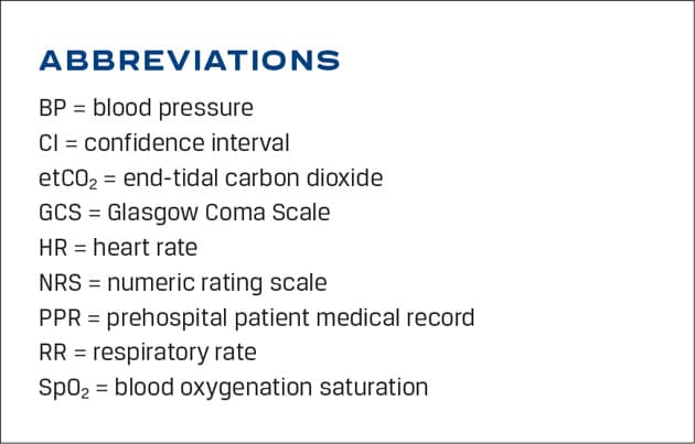 The ambulance personnel had regional guidelines on how to register the vital signs [11, 12]. The LIFEPAK monitor registers non-invasive BP, SpO2 and HR, which are automatically and wirelessly transferred to the PPR by the push of a “transfer” button [13]. In LIFEPAK 12, RR was mainly entered manually. In case of intubation and capnography with end-tidal carbon dioxide (etCO2) measurement, the RR was registered automatically. After introduction of LIFEPAK 15, it has become possible to monitor etCO2 by a special nasal catheter, which also enables automatic measurement of the RR. RR was only measured when clinically relevant. The GCS and NRS scores were recorded manually. The use of NRS was only mandatory if the patient was given analgesics [12].