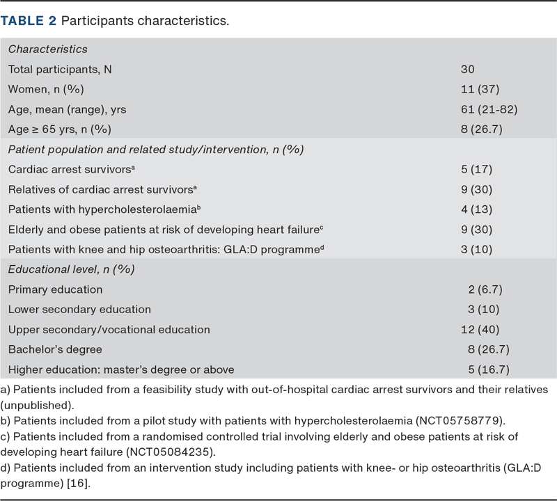The study was conducted at the Department of Cardiology, Odense University Hospital, Denmark. Participants were recruited and thereafter interviewed by DBJ and CME from October to December 2024 using purposive sampling to ensure variation in key characteristics (age, sex and education). Eligible respondents were native Danish-speaking patients or relatives aged ≥ 18 years who had participated in an intervention study (e.g., a feasibility, pilot or randomised controlled trial).