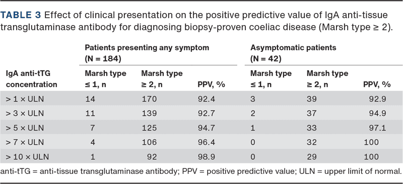 Effect of symptoms on the positive predictive value of IgA anti-tissue transglutaminase antibody