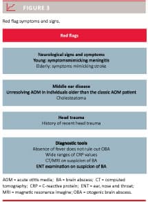The present study confirms that OBAs still constitutes a severe threat of morbidity. Early diagnostics and treatment in a multidisciplinary setting are immensely important in order to reduce the risk of this devastating complication, and antimicrobial treatment should be commenced within a few days if the AOM does not resolve. It is equally important to recognise the possibility of an ear focus when a young patient presents with diffuse symptoms resembling meningitis, or an elderly patient presents with symptoms consistent with a stroke, whether or not any classic ear symptoms are present.