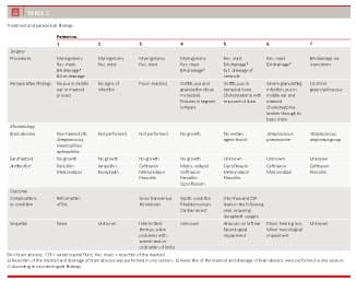 None of the patients were treated with antibiotics before admission. Intravenous treatment was commenced either before or after surgical drainage depending on the patient’s condition. In six cases, metronidazole was part of the treatment recommended by the microbiologists.