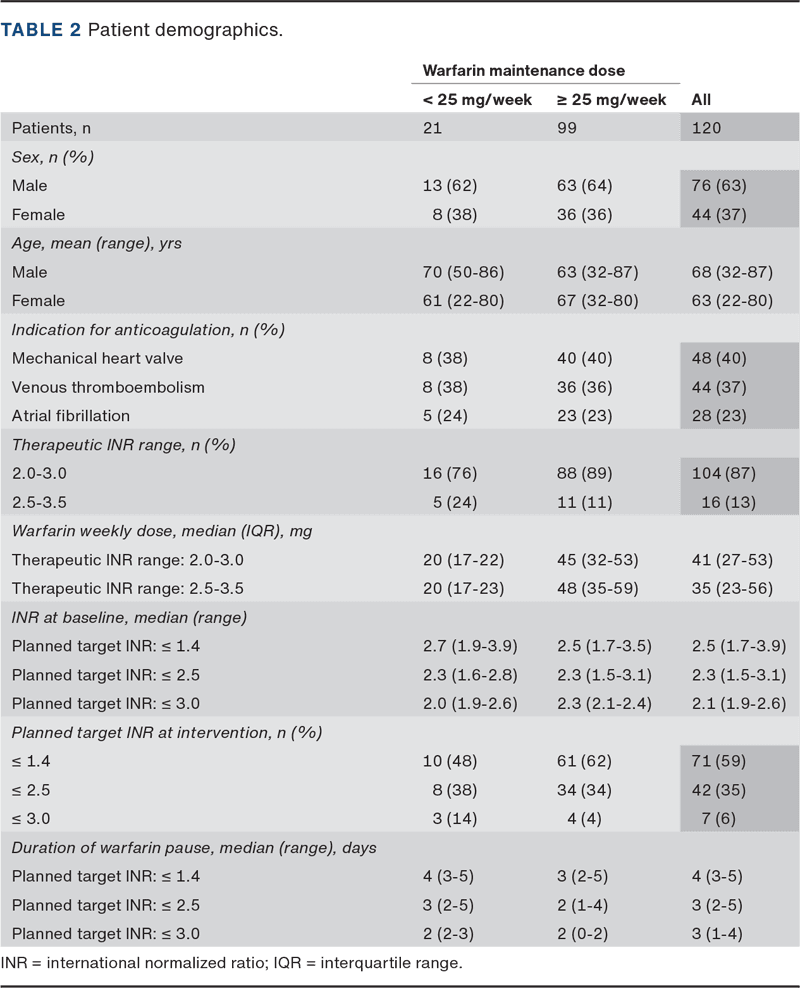 All included patients were on self-managed warfarin treatment, which is typically associated with a more stable course of INR than clinic-managed treatment. With clinic-directed treatment, changes in INR from day 5-7 before the intervention to planned cessation of warfarin may therefore possibly be greater than recorded among our patients.