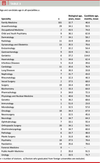 It has previously been shown that applicants for postgraduate medical specialist training in Denmark were relatively old. In 1999-2003, doctors applied for specialist training 104 months after their graduation at an average age of 37.4 years [1].