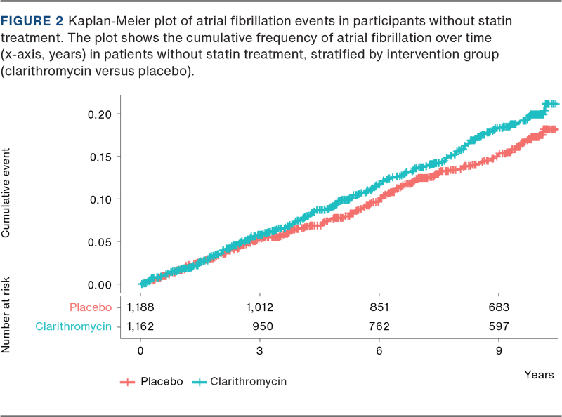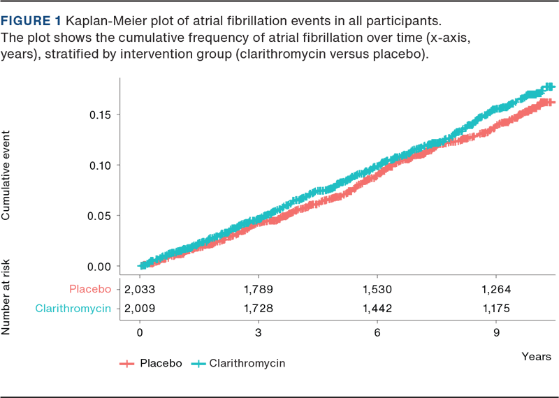 - Winkel P, Hilden J, Hansen JF, et al. Clarithromycin for stable coronary heart disease increases all-cause and cardiovascular mortality and cerebrovascular morbidity over 10 years in the CLARICOR randomised, blinded clinical trial. Int J Cardiol. 2015;182:459-465. https://doi.org/10.1016/j.ijcard.2015.01.020