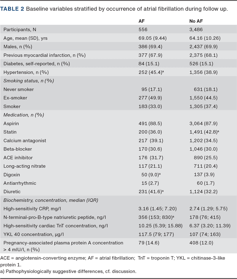 Among the 4,372 patients, 330 had AF before inclusion. Accordingly, a total of 4,042 participants were included in the present analyses (Table 1).