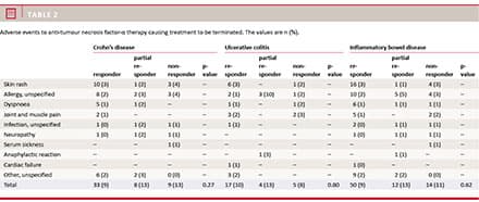 Five partial responders with UC and 5 patients with CD and 23 patients with UC, who were non-responders, were colectomised within 22 weeks of treatment initiation. Four patients with UC who initially responded to anti-TNF therapy lost the effect and were colectomised within 22 weeks of treatment initiation.