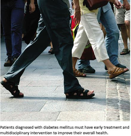 Patients referred for surgical revision of diabetic foot ulcers are often severely ill and have a high one-year mortality rate (36%) and a high frequency of co-morbidity. The economic impact is considerable as treatment of patients with diabetic foot ulcers costs 4.5 times more than treatment of medical patients during hospitalisation. Early diagnosis, treatment and multidisciplinary intervention – before, during and after hospitalisation – should be implemented to improve the treatment and overall health of the patient group.