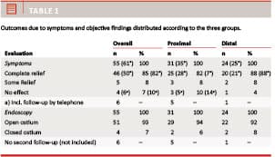Comparing our results concerning obstruction levels to other studies has been difficult as most studies only report on distal obstructions. We found few reports [1, 2], and the results were difficult to compare due to different classifications of obstruction levels, and the studies only had subjective outcomes. If our outcome only included subjective findings and we therefore included only the six patients who did not show up at the second follow up, but were contacted by phone, the success rate for the symptoms would be 86% for proximal stenosis and 96% for distal stenosis (p-value 0.40).
