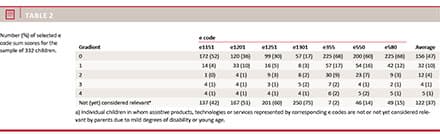 In general, however, we observed no favouring of children with greater or lesser disabilities, as we found no relationship between environmental (e code) qualifier scores and body function (b code) qualifier scores.