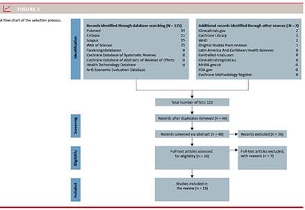 The search identified 122 records. There are no randomised clinical trials evaluating the medical treatment of RCDI or RCDII. After the selection process, a total number of 13 studies were included. Three studies [10-12] deal with the epidemiology of RCD and ten studies