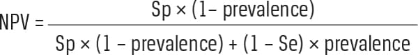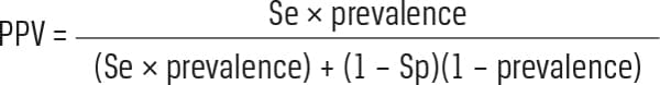 The sensitivity (Se) of a test is the conditional probability of a positive test result given presence of the disease (the percentage of diseased individuals identified by the test), whereas specificity (Sp) is the conditional probability of a negative test result given absence of disease. The PPV is defined as the conditional probability of having a disease given a positive test (the percentage of individuals with a positive test who truly have the disease). The negative predictive value (NPV) is the conditional probability of being without the disease given a negative test result (the percentage of individuals with a negative test who do not have the disease.) While the sensitivity and specificity are characteristics of the test, the predictive values measure the clinical relevance of a test result. They are calculated as: