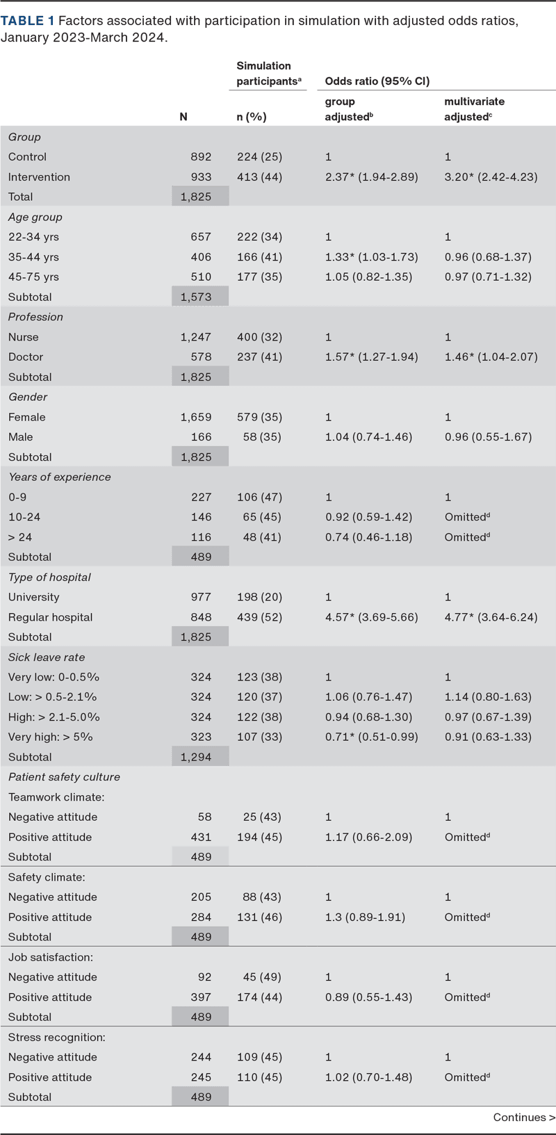 CONCLUSIONS. Professional roles and institutional context may influence simulation participation. Tailored strategies targeting nurses, early-career professionals, and university hospital staff may help increase participation and support sustained training efforts.