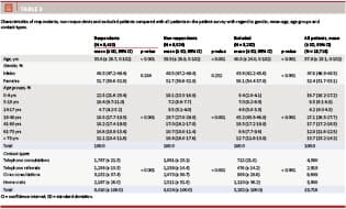 Females comprised a higher proportion than males in all groups. Parents of patients aged 0-4 years comprised the highest proportion of respondents. The largest proportion of excluded patients was adults aged 18-40 years and patients with a publically recorded protection from being contacted by researchers.