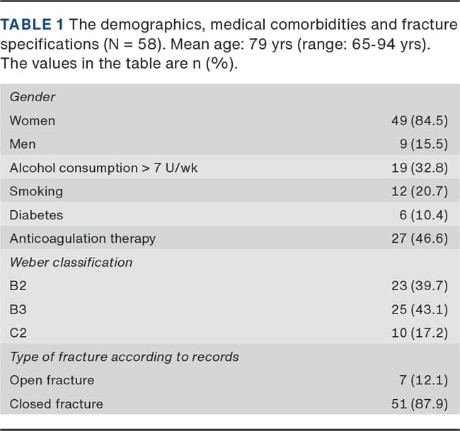 The demographics, medical comorbidities and fracture specifications are presented in Table 1.