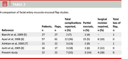 In recent years, several authors have described the use of this technique. Table 2 compares our findings to those of Bianchi et al [5], Ayad et al [6], Ashtiani et al [7] and Joshi et al [8]. Out of the 127 flaps analyzed in these four studies, there were two total flap losses and a postoperative complication rate of 24%. Our percentage of complications seems to be considerably higher than this; however we believe that, unlike the aforementioned studies, the inclusion in our study of patients who previously underwent radiotherapy contributes significantly to this difference.
