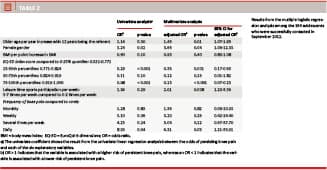Increasing frequency of pain has previously been associated with an increased risk of persistent pain [18]. These findings were replicated in the present study, and we demonstrated a dose-response relationship between increasing frequency and increasing risk of knee pain at the one-year follow-up. However, the confidence intervals are wide which suggests that other unknown factors also influence the risk of knee pain. Besides high leisure time sports participation and a high frequency of pain, female gender is a consistent prognostic factor for long-term knee pain. Our results support previous studies and show that females have a four times higher risk of persistent knee pain than males [19]. It is unknown if the increased prevalence among females is the result of biomechanics, sensorimotor control, a physiologically altered pain perception or bio-psycho-social factors.