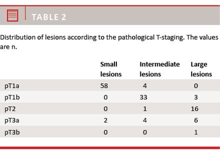 The distribution of pathological T-staging is shown in Table 2.