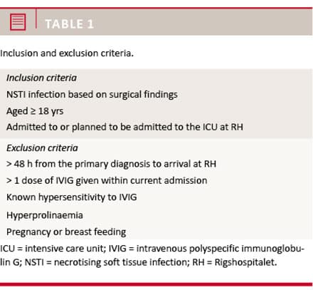 Only one trial has compared the effect of IVIG with placebo in patients with NSTI. Darenberg et al [8] aimed to evaluate the effect and safety of IVIG as an adjunctive therapy in patients with STSS in a randomised, double-blinded, placebo-controlled trial. Patients were randomly assigned to either IVIG or to an equal volume of 1% albumin. After enrolment of 21 patients, ten receiving IVIG and 11 receiving placebo, the trial was prematurely terminated due to slow enrolment. The primary endpoint was mortality over 28 days, which was 3.6-fold higher in the placebo group than in the IVIG group, but the difference was not statistically significant.