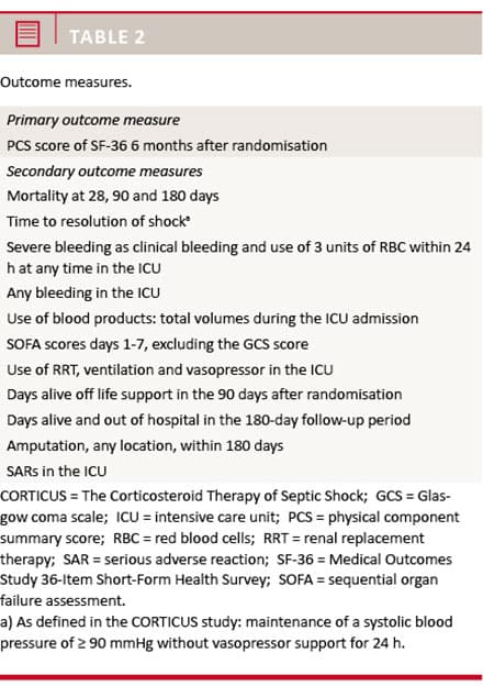 The primary outcome is the physical component summary (PCS) score of the Medical Outcomes Study 36-Item Short-Form Health Survey (SF-36) as assessed six months after randomisation. SF-36 is a generic, self-administrated general health survey with 36 questions distributed on eight health domain scales: General Health (GH), Physical Functioning (PF), Role Physical (RF), Role Emotional (RE), Social Functioning (SF), Bodily Pain (BP), Vitality (VT) and Mental Health (MH) [16]. The PCS score reflects physical health. It is aggregated from all eight scales; the scales GH, PF, RP and BP contribute the most. A higher score indicates better health. The survey is translated into Danish [17], and its reliability and validity have been assessed in an ICU setting and found satisfactory [18], and SF-36 has previously been recommended as a generic measure in the assessment of critical care patients [19].