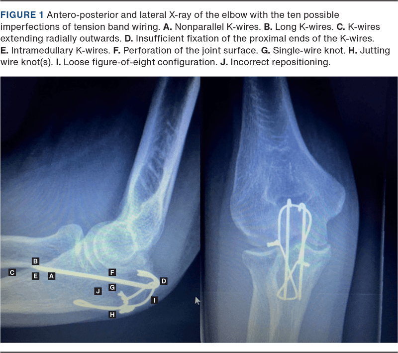 Patients’ healthcare files were reviewed for demographics, operation details, post-operative treatment and complications. Pre-operative X-rays were reviewed for classification using the Mayo classification [12], and perioperative or early post-operative X-rays were assessed for IMPO of TBW based on the ten imperfections presented by Schneider et al. [9] (Figure 1):