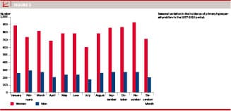 Figure 3 shows the seasonal variation in the incidence of PHPT for the 1977-2010 period. When comparing men and women, no seasonal variation was seen.