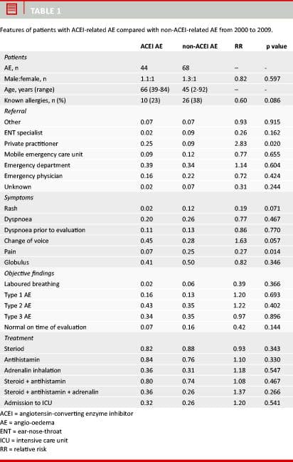 Fatalities from ACEI-related AE are extremely rare, with only isolated case reports in the literature mainly involving black people [15]. Despite this, almost one third of all patients presenting with AE in our department are admitted to the ICU. This was only the case for 11% of the patients in a study by Banerji et al [16].