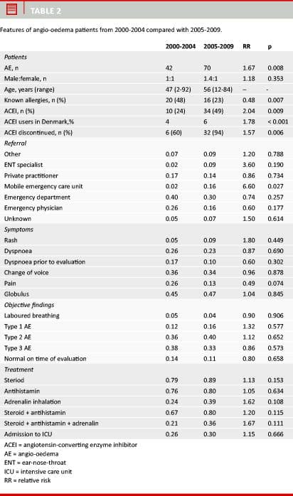 We found an increased rate of ACEI-related upper airway AE corresponding to greater use of ACEI in the population. With a relative risk of 7.7 and a continuously increasing ACEI consumption, this condition will certainly require future attention and resources as almost one third of patients are admitted to an ICU. Fortunately, most doctors have recognized the relation between AE and ACEI as 94% of ACEI prescriptions were discontinued following AE in 2005-2009. ARBs seem to be a safe substitute.