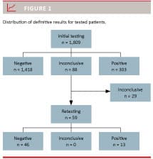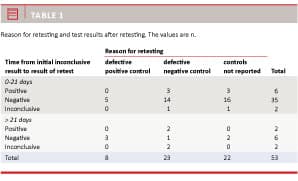 A conclusive result was achieved in 49 (83.1%) of 59 retested patients. The median time passed between initial testing and retesting was seven days (range 1-117 days).
