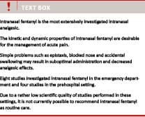 In this review, six of the 12 included studies [12, 14-19] investigated the analgesic effect of IN fentanyl at a rather low concentration of 50 μg/ml. Borland et al compared the analgesic effect of IN fentanyl at a concentration of 50 μg/ml versus 300 μg/ml. They demonstrated no significant differences in pain score, however, the “low concentration” group had a higher consumption of supplemental analgesia in the.. All six studies, two studies comparing 50 μg/ml IN fentanyl with IM morphine and high-concentration IN fentanyl, and four non-controlled studies, demonstrated an analgesic effect of 50 μg/ml fentanyl. However, as four of the six studies are non-controlled (Table 2) and current pharmacokinetic studies support use of high concentration IN fentanyl, it remains difficult to assess the non-inferiority of low-concentration (50 μg/ml) compared with high-concentration IN fentanyl.