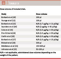 The Cochrane criteria for evaluation of adequate blinding and randomization were followed [10] (Table 2). Data concerning volume of dose were also extracted from the included studies (Table 3).