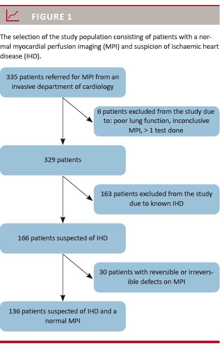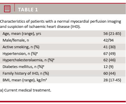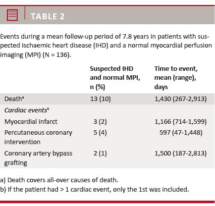 Patients with known CAD were excluded from the analysis as were patients suspected of CAD who had reversible or irreversible perfusion defects during MPI; this left 136 patients with suspected IHD and a normal MPI for long-term follow-up.